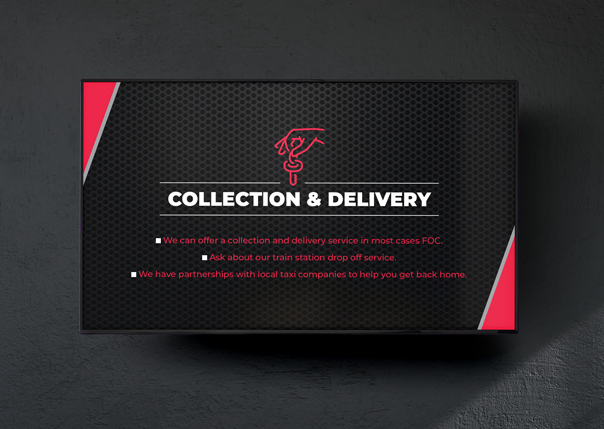 Silvester Crash Repair are a business that know what they need, and that is cohesive and stylish branded promotional material. The only problem they had was finding someone to create what was required. TBB Design was the company to make their dreams come true. Motion graphics shown on screens in their two reception areas was one way to highlight all the services they offer, and a whole range of promotional material really makes this great business stand out.