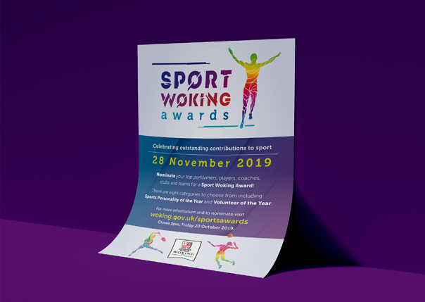 We first collaborated with Woking Borough Council on the Sport Woking Awards project in 2019, establishing a vibrant and modern design style. By incorporating a dynamic color palette and contemporary visuals, we created a fresh, energetic identity that resonated across various materials, including posters, leaflets, and signage. This cohesive design approach helped enhance visibility and engagement, setting the tone for Sport Woking’s branding in the years to come.